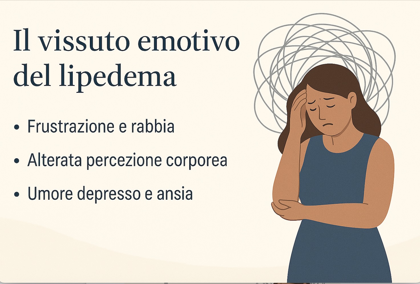 Succede che il paziente con lipedema oscilli tra momenti di depressione e momenti di rabbia.